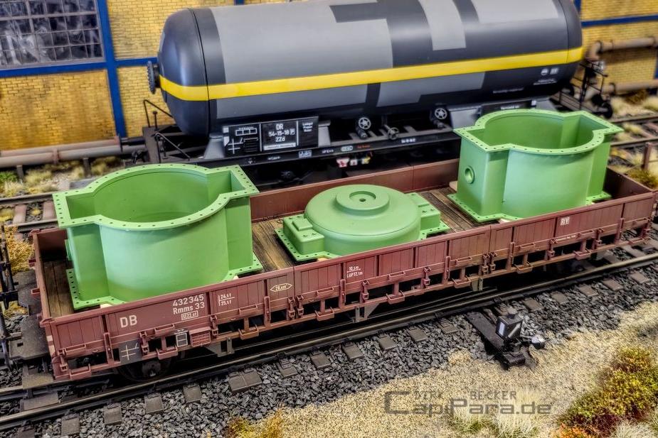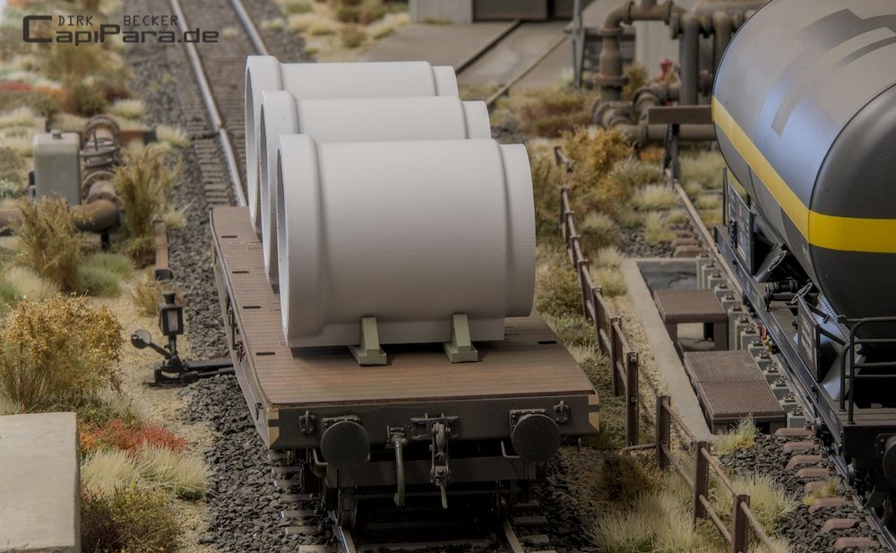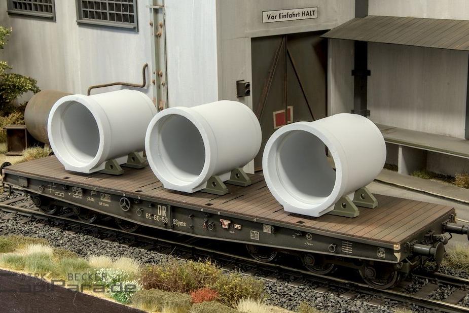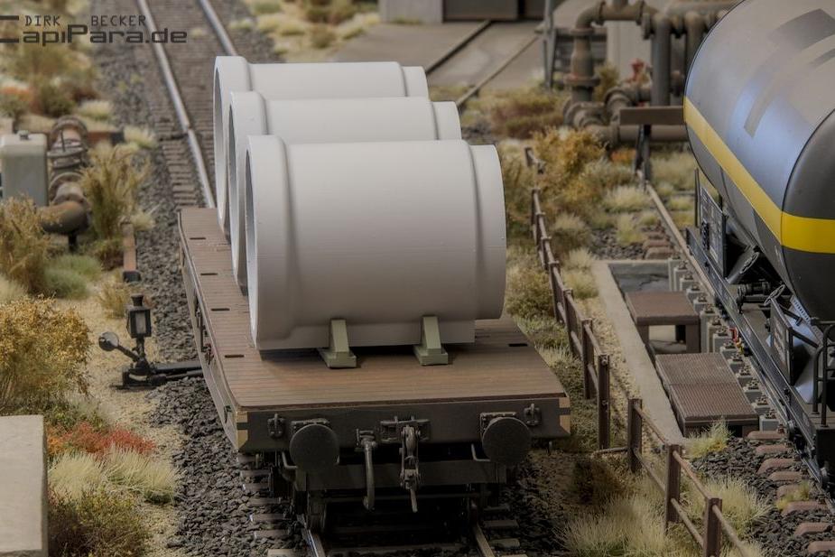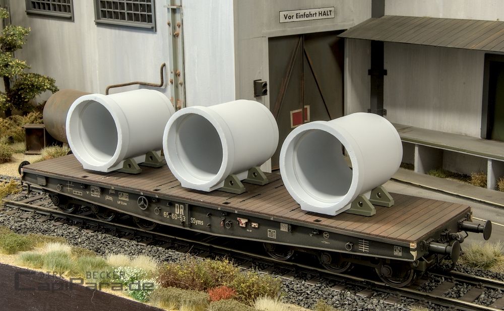 Sicherlich sind bei der großen Eisenbahn viele (Flach)Wagen leer unterwegs, aber eben nicht alle. Für die Beladung unserer Modelle gibt es hier passendes LADEGUT. Jedes Ladegut wurde auf einem SS15 vom KM 1, auf einem Rmms von Märklin oder auf einem SSyms von KISS erprobt, kann aber natürlich auch bei anderen Wagenbauarten verwendet werden. Und natürlich lassen sich alle Teile aus dieser Rubrik auch auf der Ladestraße, im Fabrikgelände oder auf dem Anschlussgleis gut platzieren.