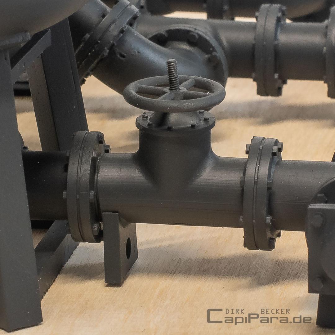* Alle Absperrschieber werden ohne Stahlstift/Gewindestift geliefert. Je nach gewünschtem Detailgrad diesen bitte aus der heimischen Bastelkiste verwenden. Eine Gewindeschraube M 1 mit abgeknipsten Schraubenkopf tut es manchmal auch.
