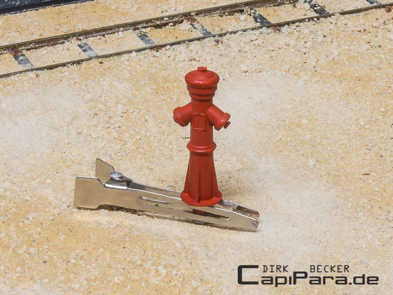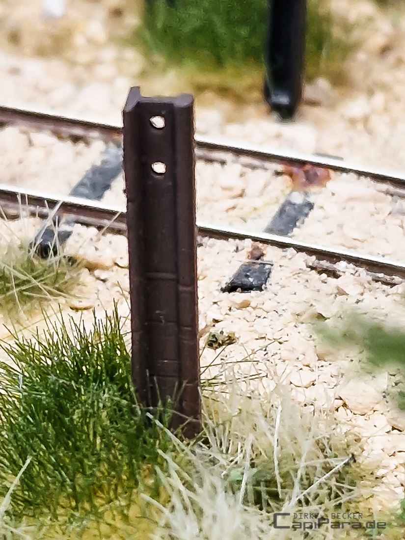 #2407 - Geländer-Pfeiler aus Schienenprofil, zwei Bohrungen, Länge über Gelände = 34 mm