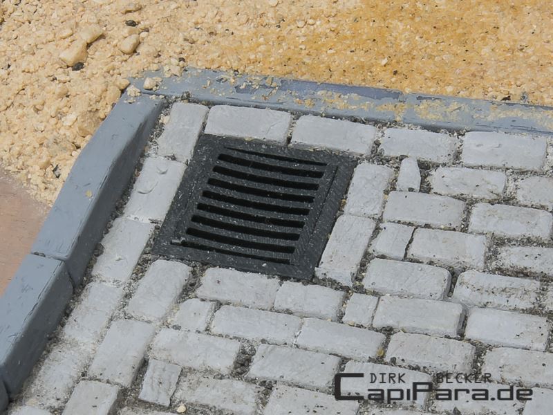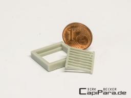 #2405 - Gulli-Einlauf (zweiteilig), Abmessungen vom Aussenrahmen: Länge = 19,5 mm, Breite = 17,8 mm, Höhe = 4,0 mm