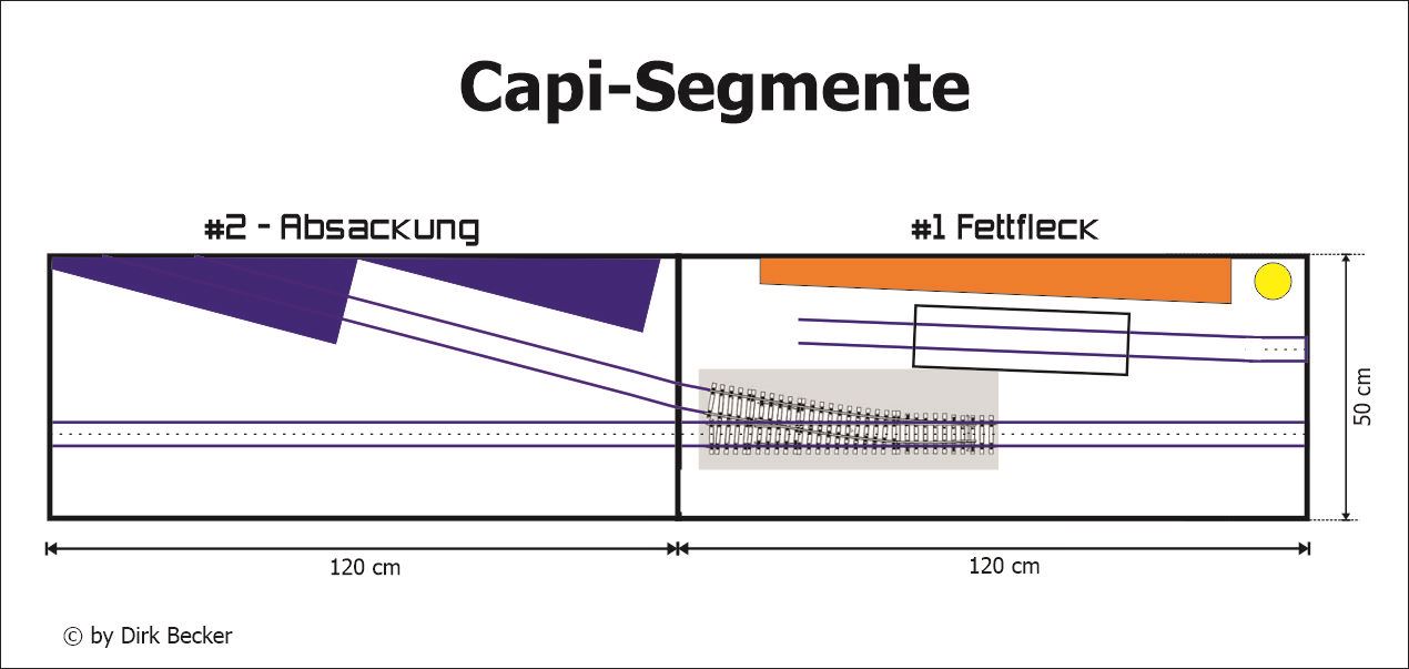 Inspiriert von den Anlagen bei den Internationalen Spur 0 + 1 Tagen in Gießen im März 2024 reifte der Gedanke, mit Spur 1 Regelspur mehrere Segmente zu bauen. Keine langen Strecken, keine großen Flächen, keine langen Züge - dafür mehr Details und Rangierspaß. Mehr geht derzeit räumlich eh nicht. Wie viele Segmente es einmal werden, ist jetzt noch nicht absehbar. Und natürlich kommen wieder zahlreiche Teile aus meinem Drucker zum Einbau. Gefahren wird übrigens, im Gegensatz zu FREMO-Modulen, mit NEM-Radsatzprofil. Ich baue Segmente, die im Gegensatz zu Modulen, nicht frei untereinander tauschbar sind. Dennoch gibt es einen "genormten" Gleisabstand, so das an einigen Segmentübergängen die Option zum Ändern der Segmentreihenfolge besteht.