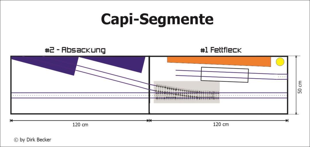 Mit dem kleinen Schattenbahnhof, der als nächstes gebaut wird, ist die kleinste Stammgröße vom "Rangierbezirk Acht" erreicht. In dieser Minimalversion wird eine Größe von 0,50 m x 3,60 m erreicht.