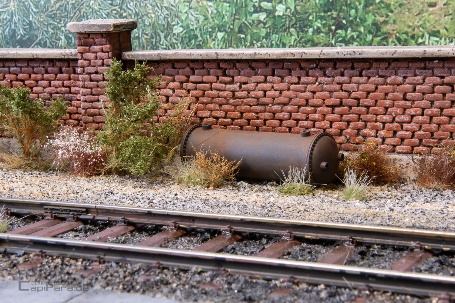Ganz spontan, 49 Tage vor der Messe in Gießen 2024, wurde der Entschluss für ein neues Diorama gefasst. So entsteht neben dem Diorama Km 18,4 ein weiteres Schaustück für Foto- und Präsentationszwecke. Ein Gebäude und eine Mauer kommen von Waller-Modellbau, dazu wieder viel selbstgemachtes aus dem Drucker.